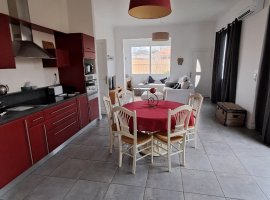 La cuisine est ouverte sur le salon et la véranda.