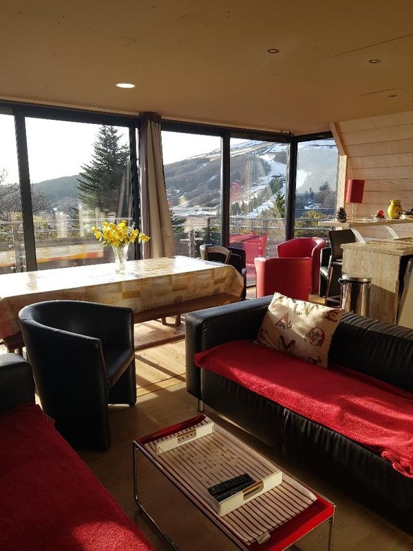 Chalet 6 pers.au coeur de la station de Super Besse refait à neuf (3 chambres), vue panoramique à couper le souffle vue sur le lac de baignade surveillée et sur les magnifiques montagnes, pistes de ski, tout à pied ou