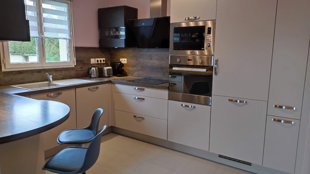 Pavillon comprenant un séjour, un salon, cuisine équipée, une chambre au rdc avec salle d'eau et wc. A l'etage : 3 chambres, salle de bains et wc.