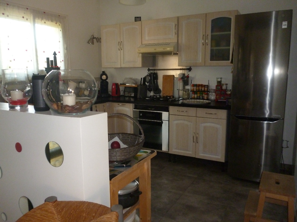 Elle est composée d'un rez de chaussée avec salon salle à manger et cuisine ouverte, une chambre d'amis/bureau, une salle de bains et des toilettes.