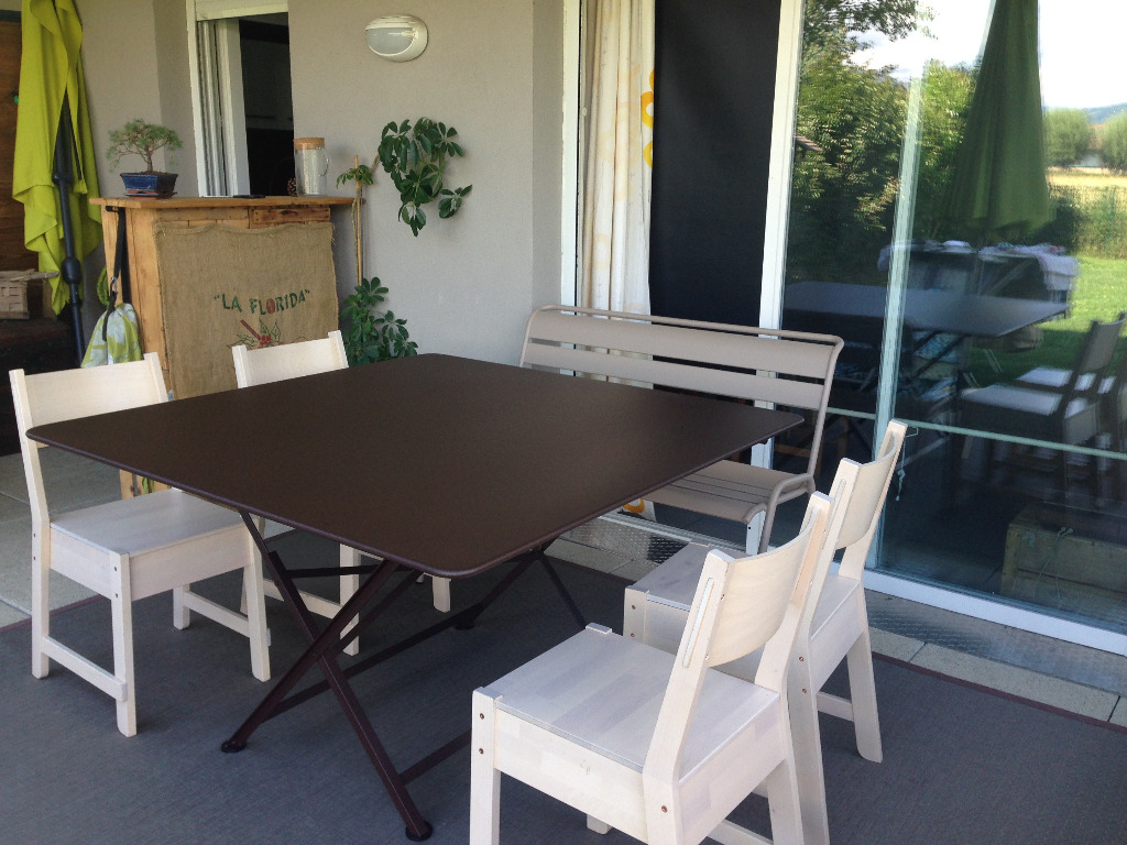 Appartement avec grand jardin 300m2 dans un petit immeuble de 9 appartements. 3 chambres, couchage pour 4 personnes, taille idéale pour 4 personnes. 2 lits doubles fixe, 1* 160 et 1 *140cm plus un matelas à poser à même le sol. Depuis le salon vue sur le champ (avec des vaches ou des chevaux) et sur le Mole, la montagne sacrée du coin. Traversant, orienté plein Est (soleil le matin et un retour le soir). Très calme, place de parking. A votre disposition, lave linge, lave vaisselle, réseau fibre, trampoline géant (4m), table de ping pong, cage de foot, videoprojecteur très grand écran pour vos soirées cinéma, des BD, des mangas et jeux de société à foison, cible de fléchettes, baignoire, terrasse, salon de jardin, cuisine extérieure. A disposition: vélos de tourisme (VTC homme, BTwin femme et un vélo pour enfants de 12 ans. Commerces proches à 1km (marché le samedi, épicerie vrac, caviste, tabac/journaux, supermarché, restaurants, kebab, pizza pour les amateurs).