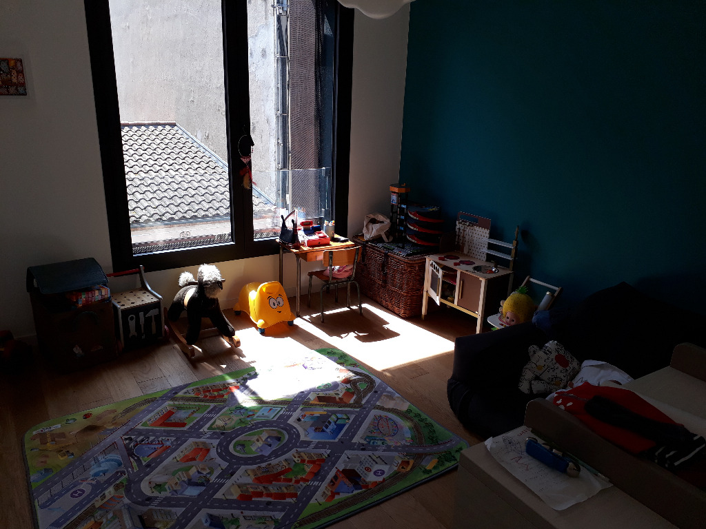- au 1er étage : 2 chambres d'enfants (chacune avec un lit 90*190 et un fauteuil futon qui se déplie en lit 100*200 très confortable) et 1 chambre parentale avec un lit en 160*200, une salle de bain, des WC séparés
