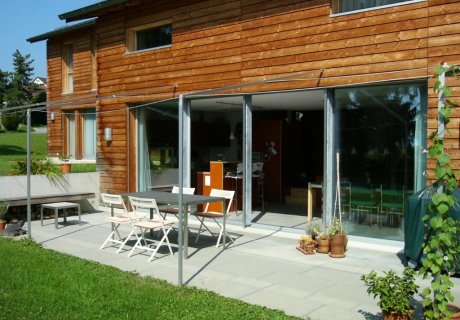 Maison d' architecte très lumineuse dans un environnement calme niché entre lac et montagne.