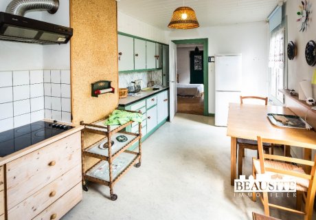 La maison est de plein pied dans une propriété privée. Vous rentrez par un vestibule. Sur votre droite la cuisine qui ouvre sur le salon et l'espace repas. A l'étage, vous trouverez à gauche l'accès à la terrasse et à droite : la salle de bain ( douche + wc ), la chambre d'enfant avec deux lits simples et la chambre à coucher avec le grand lit double.