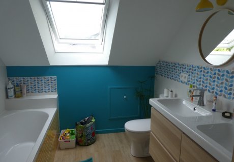 Notre maison est une maison de ville des années 30 de 120m2 avec 3 chambres, un palier-bibliothèque, une cuisine aménagée, une salle, un salon et un joli jardin dans un quartier calme avec tous les commerces et services à proximité (boulangerie, boucherie, tabac-presse, supermarché, pharmacie, médecin...) à 5 minutes à pieds.