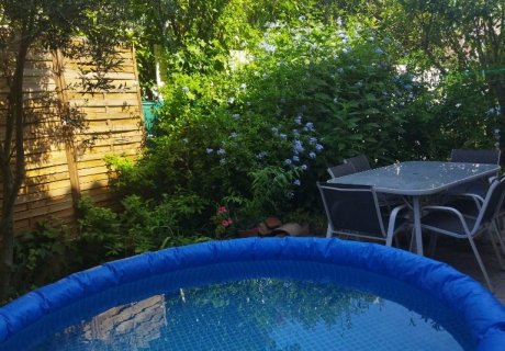 Maison familiale 6 personnes avec petit jardin, climatisation, accessible par tout moyen de transports. 2 étages. Grande pièce à vivre. 3 chambres. 2 toilettes.