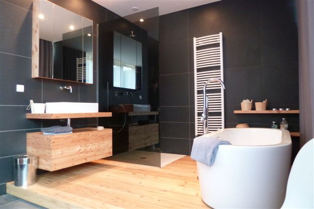 A l'étage un bureau sous les toits et 3 autres chambres, dont une avec lavabo et baignoire.
