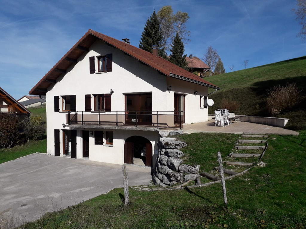 Construite en 1995 et située à 1120m d'altitude, notre maison est particulièrement lumineuse et agréable : elle comprend un séjour-cuisine, une vue très dégagée sur la nature (piste de ski de fond en hiver) et n'a aucun vis à vis. Vous pourrez profiter de la terrasse pendant que les enfants gambaderont dans la forêt. Les commerces sont à 10 min à pied, les lacs à 15 min en voiture, les randos/le ski sur place, et la Suisse à 5kms.