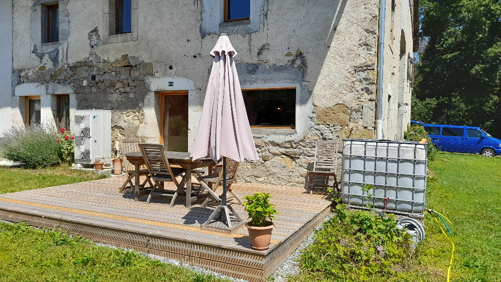 Ancienne ferme, mitoyenne, rénovée depuis peu de temps, avec un jardin, potager et une terrasse en bois, au milieu des champs