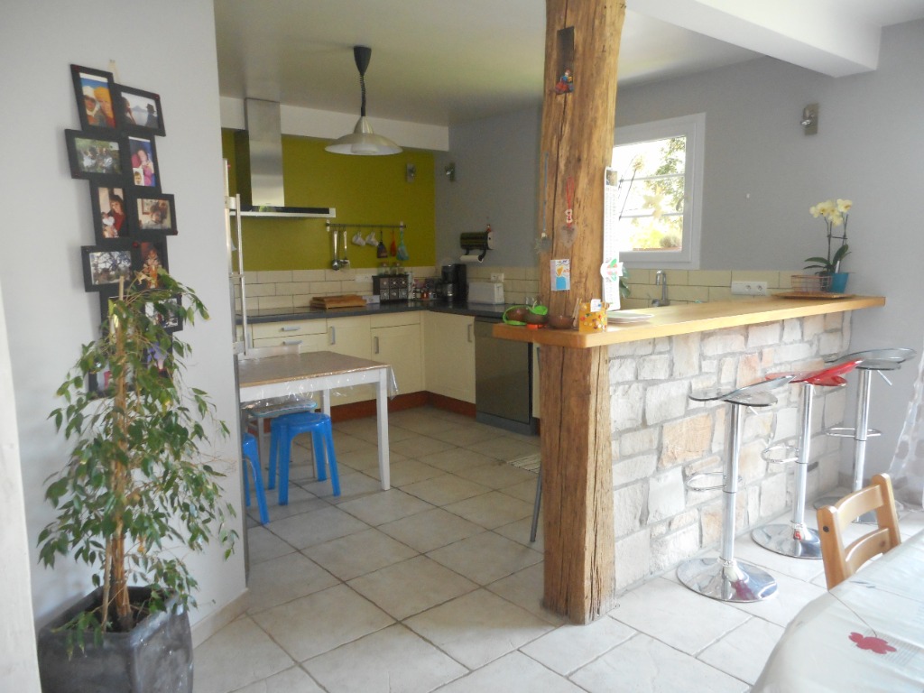 - une cuisine équipée et un grand séjour-salle à manger ouvrant sur un jardin et une terrasse couverte