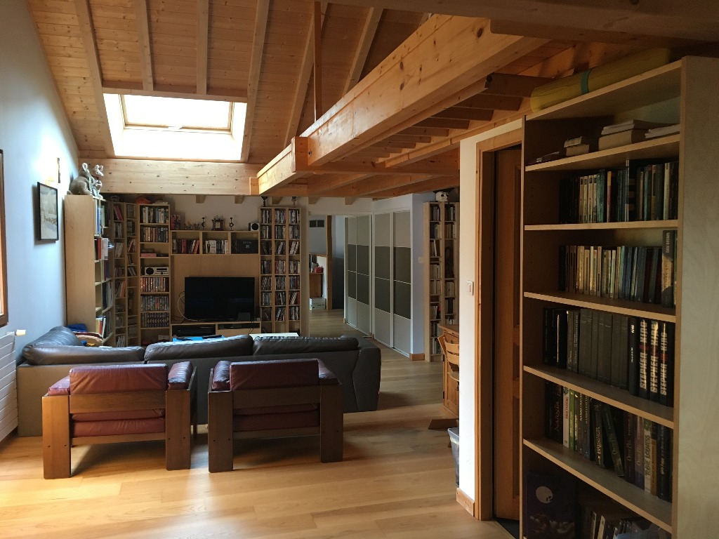 Maison de village mitoyenne entièrement rénovée au pied du Mt Salève. Au rez, cuisine ouverte sur salle à manger avec un coin bureau. Petite terrasse donnant sur la rue, soleil le soir. Au 1er : 4 chambres (dont 1 avec lit double) et une salle de bains. Au 2ème : grand espace ouvert sur tout l'étage avec une mezzanine-dortoir et 5 matelas ainsi qu'une salle de bains et une cuisine. Jardin clos non attenant (à 100m). Nous y avons des ruches.