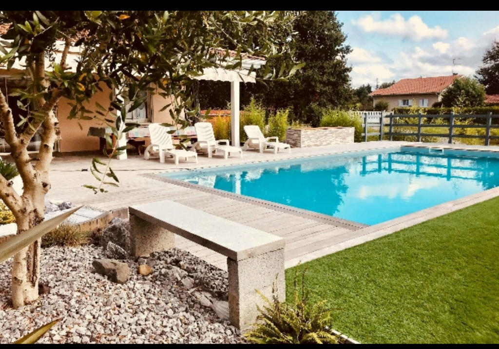 Villa de 130 m² avec beau salon et belle cuisine, 3 chambres salle de bain baignoire et douche. Grandes et nombreuses baies vitrées permettant un accès rapide aux extérieurs.