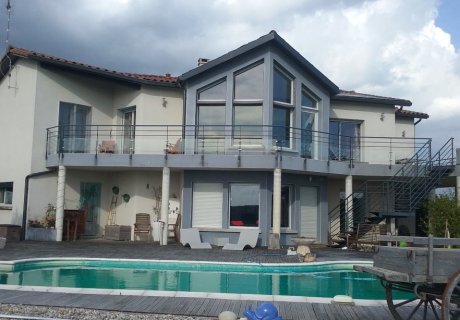 Maison lumineuse et spacieuse, avec un magnifique point de vue! Intérieur "cosy", très confortable. Plusieurs terrasses différemment orientées pour profiter au mieux de tous les horizons. Magnifiques levers et couchers de soleil! Internet par fibre optique.