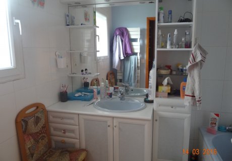 Single storey house with a mezzanine; a kitchen overlooking the living room, dining room. 4 bedrooms, a bathroom, a mezzanine (desk and reading area), a garden with games for children.