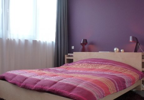 On the ground floor, living room with open kitchen + TV corner and reading. Master bedroom with bathroom and dressing room + a child.