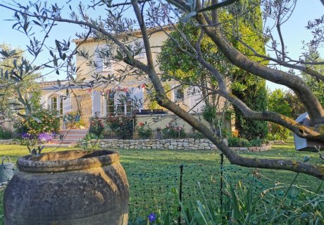 Bastide entre mer et Cévennes de 200m2 sur terrain clos de 1200m2 dans village toutes commodités. 5 chambres, piscine, terrasse, jardin, barbecue... Idéal pour les familles.