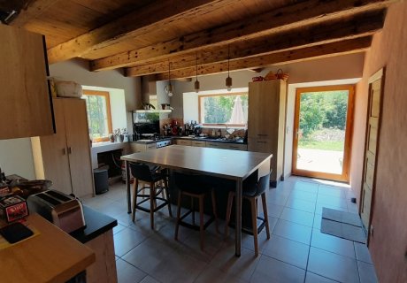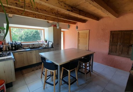 Ancienne ferme, mitoyenne, rénovée depuis peu de temps, avec un jardin, potager et une terrasse en bois, au milieu des champs