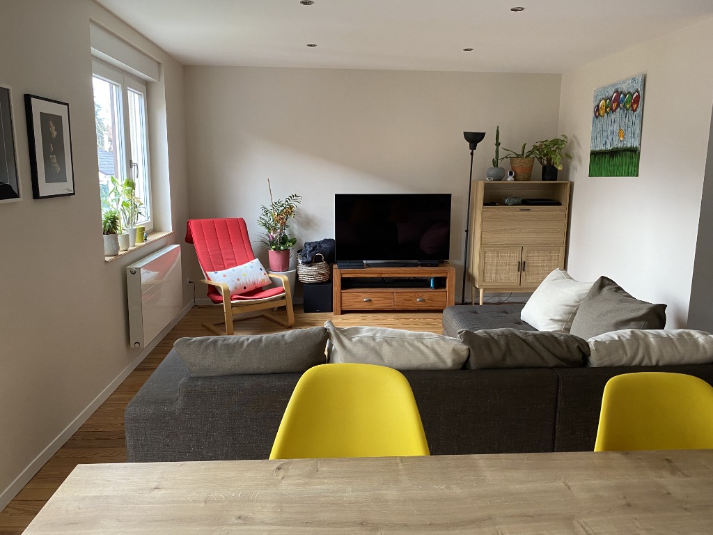 Maison 4-5 personnes, au centre d’un village de 5000 habitants à 15 minutes de Strasbourg. La maison date des années 30 et a été entièrement rénovée.