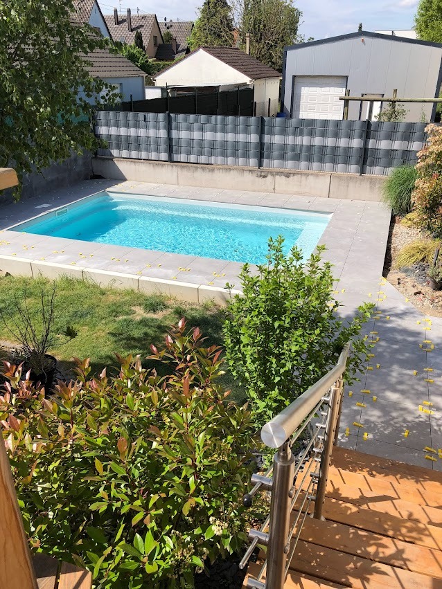 Composée de 2 étages, vous trouverez au rez de chaussé l'espace de vie ; cuisine équipée ouverte sur le salon et donnant sur une terrasse sur pilotis de 20m2 orientée sud. S'il fait trop chaud sous le soleil alsacien, vous pourrez vous mettre à l'ombre en dessous (salon de jardin). Le rez de chaussée est complété par une salle de jeux / bureau pour les enfants, et une salle à manger.
