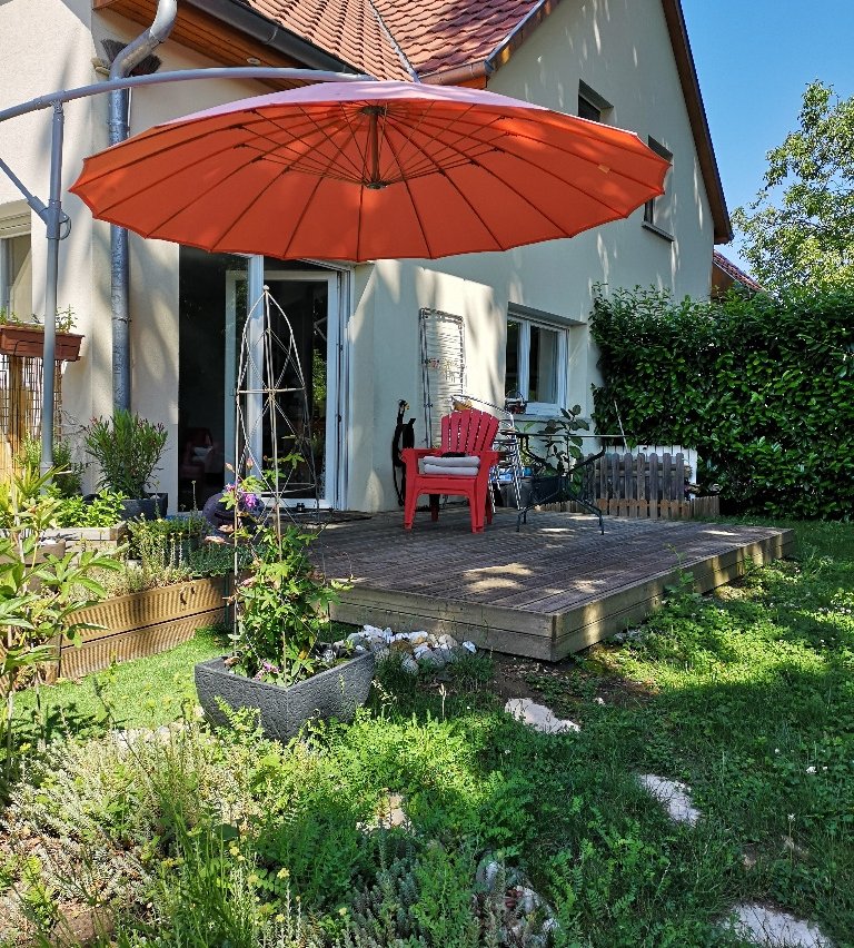 Appartement maison en duplex de 90 mètres carrés (85 mètres carrés habitables) avec grande pièce à vivre et 3 chambres. Accès de plain-pied à une terrasse de 12 m2 dans un jardin de 66 m2 donnant sur la verdure. Quartier calme, au fond d'une impasse, dans un bourg tranquille de 2500h avec toutes les commodités et commerces à proximité. Accès à un hypermarché à 2 km, à l'autoroute à 3 km, à la frontière avec l'Allemagne à 3 km également. Garage et carport privatifs.