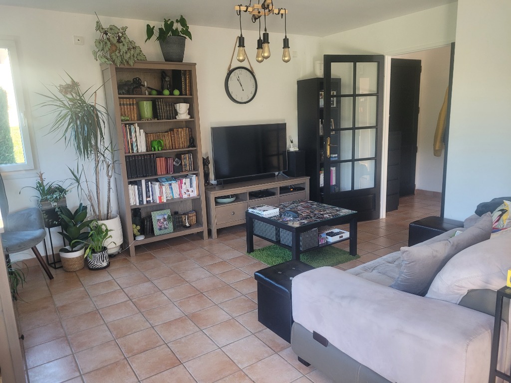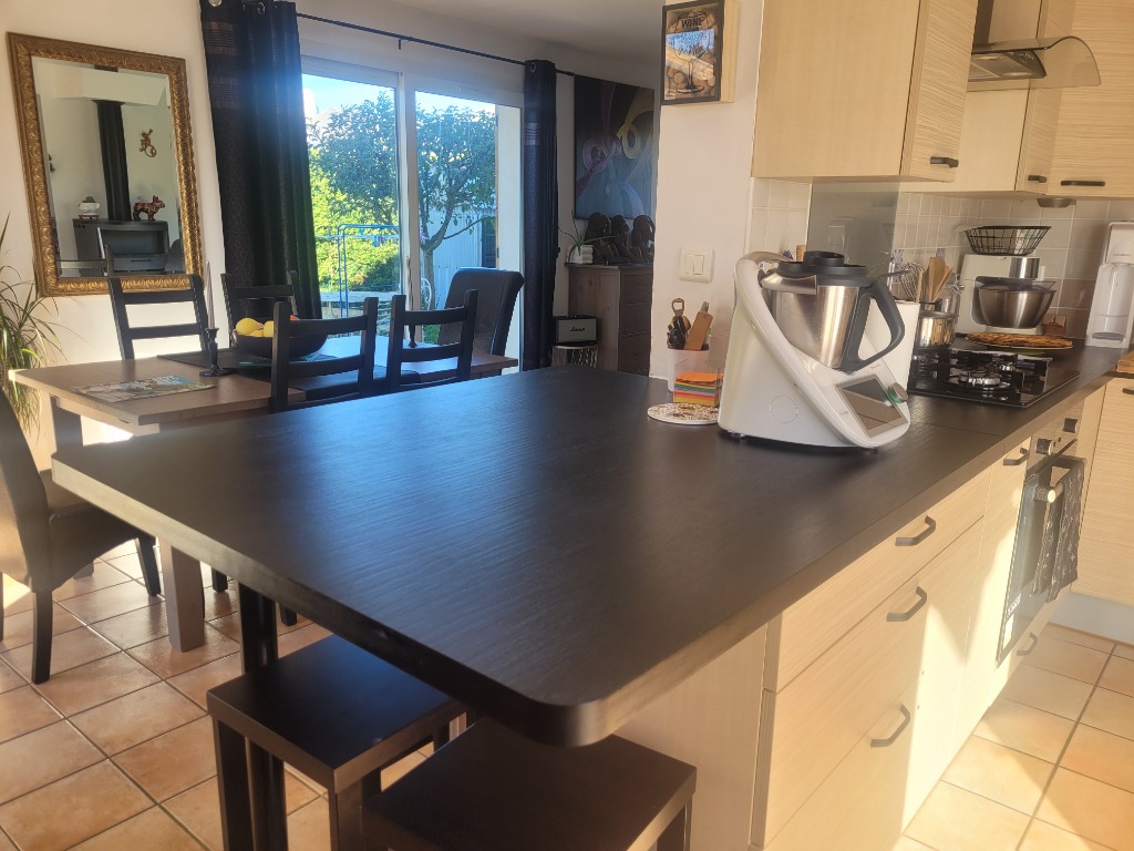 Maison de 1999. Pompe à chaleur avec poêle à bois en chauffage d'appoint. La maison se compose de 3 demi niveaux. Au niveau de l'entrée, cuisine ouverte + pièce à vivre de 40 m2 donnant sur terrasses aménagées de tables + chaises + transats et jardin. Au niveau 1 : 2 chambres, toilettes et salle d'eau avec douche. Au niveau 2 : 2 chambres avec chacune un lit double, un espace séjour avec BZ donnant sur balcon, salle de bains avec baignoire d'angle et wc séparés. Au niveau 3 : mezzanine donnant sur pièce avec 2 lits simples.