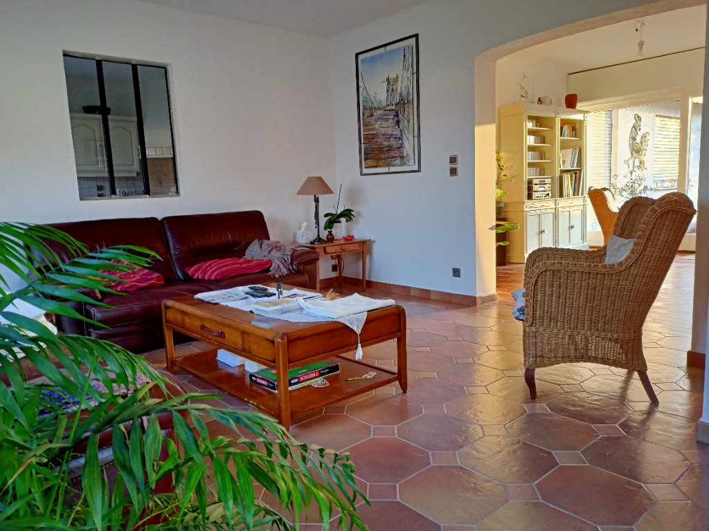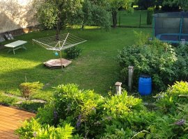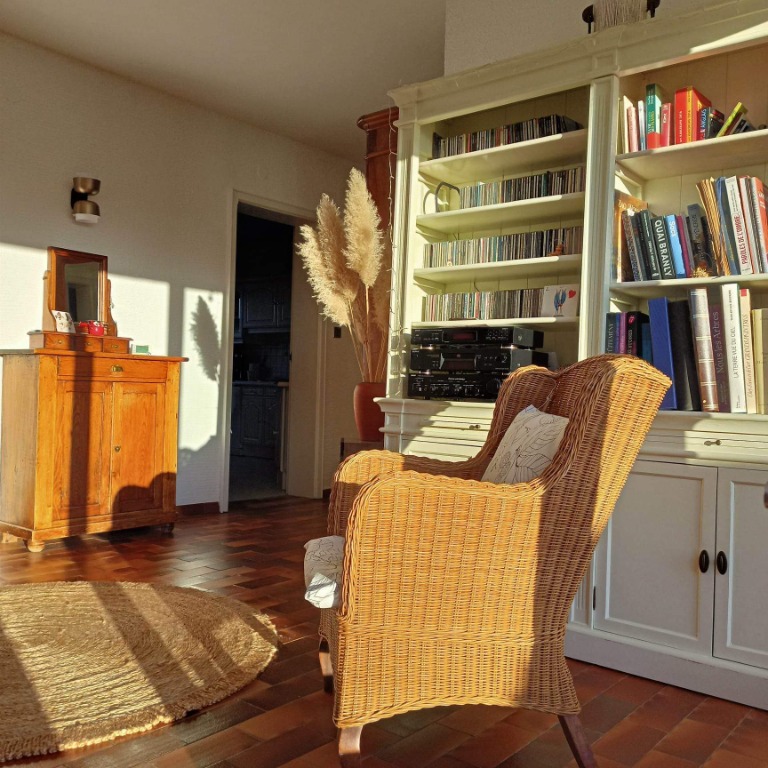 Grande maison tout confort et lumineuse, 2 terrasses, 3 chambres, 2 salles de bain, WC séparé, salon, salle à manger, espace lecture et musique avec cheminée.