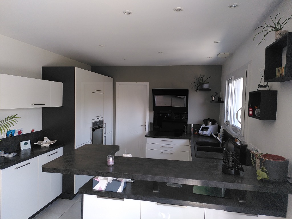 La maison est récente. Située sur un terrain de 600m², elle offre 120m² d'espace intérieur : une suite parentale avec une grande douche, 3 chambres d'enfants spacieuses, une cuisine ouverte, une seconde salle de bain, une buanderie et un garage. Une grande mezzanine offre un espace de jeux supplémentaire.