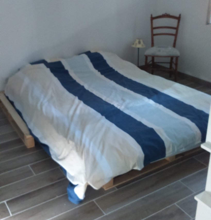 En rez de chaussée avec accès au jardin, avec une chambre (lit double en 140 cm), une salle de bain, et un canapé lit dans le séjour, une cuisine ouverte sur le séjour.