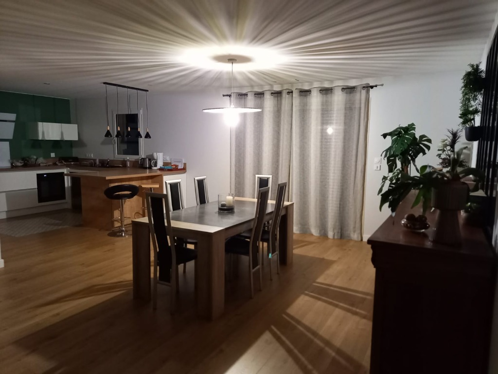 La maison est de plain pied, très lumineuse, et tout équipée (four, lave vaisselle, micro ondes, cafetière, bouilloire, frigo, ...). Située dans un quartier très calme, elle possède un grand jardin fermé (env 1400m² avec balançoire), une terrasse couverte d'une pergola (parfait pour les enfants ou pour des repas/apéros en extérieur) et 3 chambres. Voici le détail des chambres: 1 chambre parentale (avec sdb et lit 140), 1 chambre enfant (avec 1 lit 90), 1 autre chambre enfant (avec 1 lit gigogne, càd 2 matelas en 90 pouvant accueillir 2 enfants).