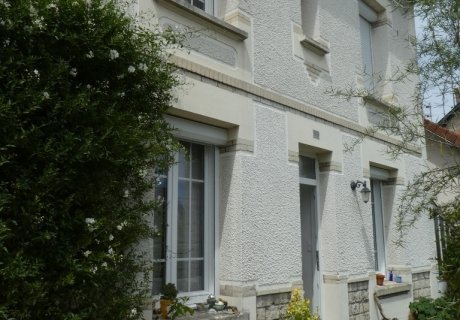 Notre maison est une maison de ville des années 30 de 120m2 avec 3 chambres, un palier-bibliothèque, une cuisine aménagée, une salle, un salon et un joli jardin dans un quartier calme avec tous les commerces et services à proximité (boulangerie, boucherie, tabac-presse, supermarché, pharmacie, médecin...) à 5 minutes à pieds.