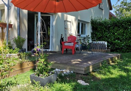 Appartement maison en duplex de 90 mètres carrés (85 mètres carrés habitables) avec grande pièce à vivre et 3 chambres. Accès de plain-pied à une terrasse de 12 m2 dans un jardin de 66 m2 donnant sur la verdure. Quartier calme, au fond d'une impasse, dans un bourg tranquille de 2500h avec toutes les commodités et commerces à proximité. Accès à un hypermarché à 2 km, à l'autoroute à 3 km, à la frontière avec l'Allemagne à 3 km également. Garage et carport privatifs.