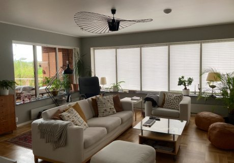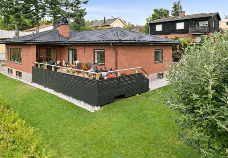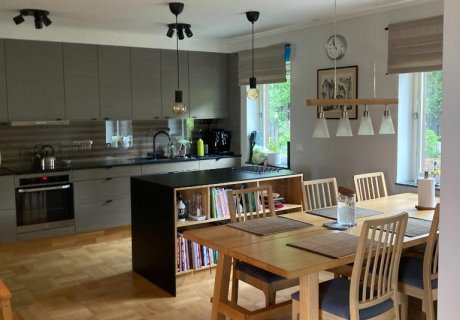 Maison avec jardin dans un quartier calme en banlieue de Stockholm. Entre la ville, les lacs et la campagne.