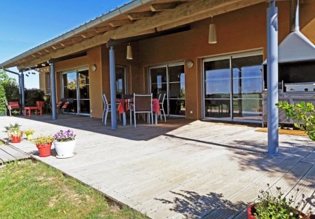 Maison d'architecte avec piscine terrasse couverte plein Sud vue sur les Pyrénées