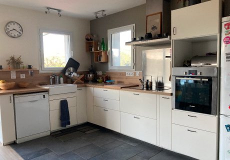La maison se situe dans un quartier calme avec une superbe vue depuis la terrase sur les Pyrénées.