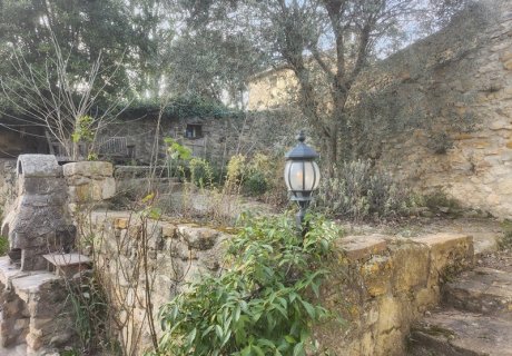 2000m2 de jardin principalement en restanque, avec arbres centenaires apportant de l'ombre. Piscine 8x4. Maison au "bout du chemin", dans les vignes.