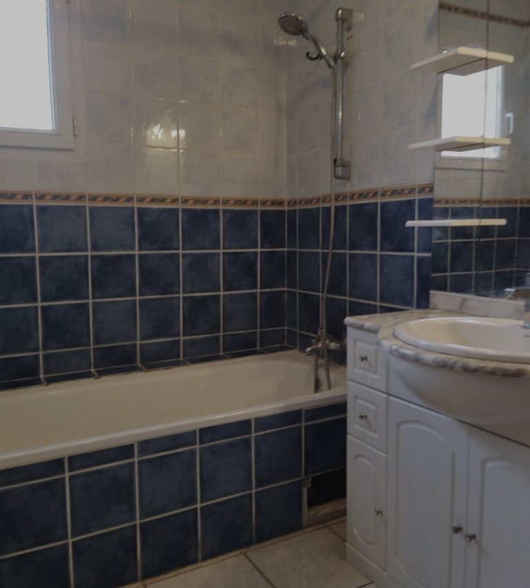 Maison familiale 6 personnes avec petit jardin, climatisation, accessible par tout moyen de transports. 2 étages. Grande pièce à vivre. 3 chambres. 2 toilettes.
