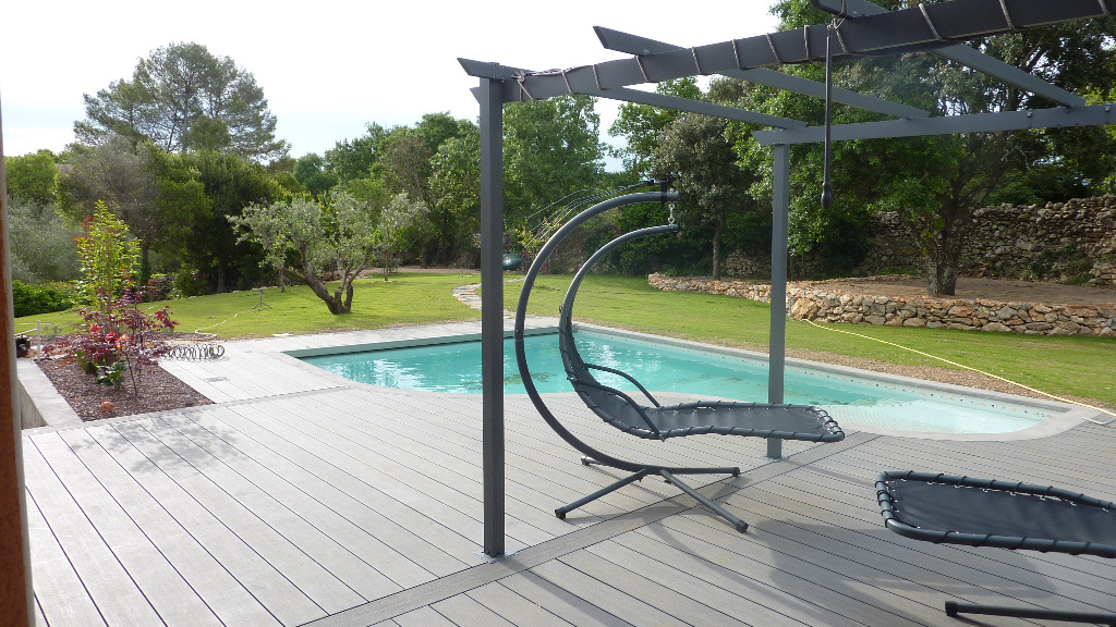 Grand jardin de 2000 m2 arboré, terrasse bois avec barbecue et plancha. Très agréable piscine (avec volet immergé) pour profiter de la chaleur de l'été! Garage de 60 m2. Climatisation par le sol.