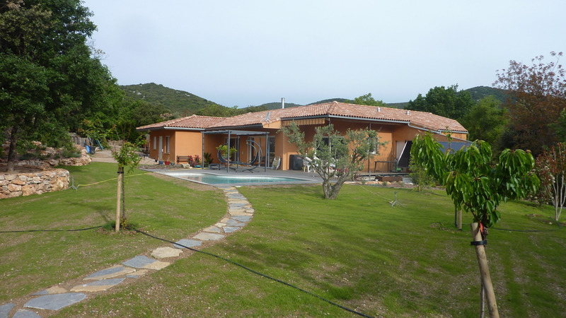 Maison au pied des collines dans la garrigue.