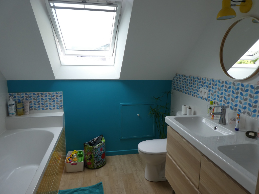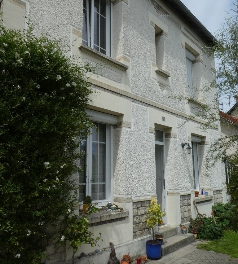 Notre maison est une maison de ville des années 30 de 120m2 avec 3 chambres, un palier-bibliothèque, une cuisine aménagée, une salle, un salon et un joli jardin dans un quartier calme avec tous les commerces et services à proximité (boulangerie, boucherie, tabac-presse, supermarché, pharmacie, médecin...) à 5 minutes à pieds.