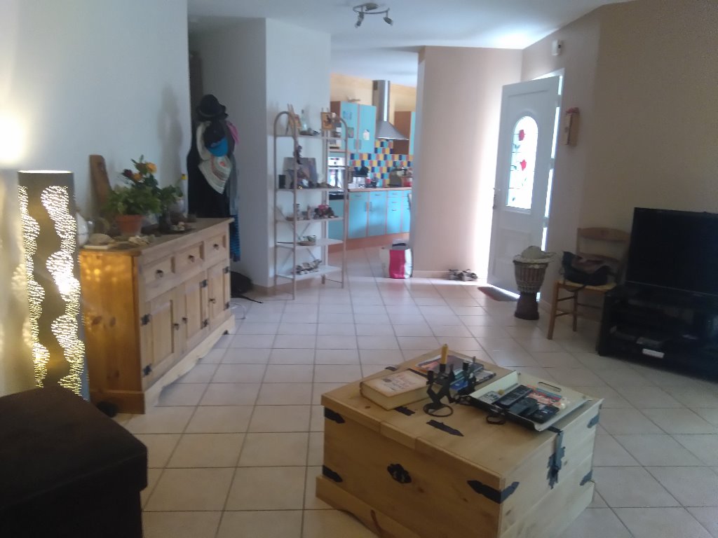 Notre maison est de plain- pied et fait 100 m2 sur un terrain clos et arboré de 1500 m2; elle est lumineuse (orientée sud) et très fonctionnelle. Elle se compose d'un grand salon meublé avec soin avec les équipements multimédias (TV lcd grand écran, lecteur DVD multimédia, accès Internet, Chaîne- hifi...), un grand canapé d'angle convertible en lit 2 places, une bibliothèque. La cuisine, ouverte sur le séjour, est entièrement équipée (frigo, four classique et micro- ondes, plaques à induction, lave- vaisselle, hotte aspirante...) avec de nombreux placards de rangement et tous les ustensiles. Ensuite, un couloir d'accès aux chambres permet d'isoler le coin jour du coin nuit. Vous trouverez dans l'ordre les toilettes, puis la salle de bain comprenant une baignoire, une douche, 2 vasques avec des grands miroirs, un placard de rangement, une commode sur laquelle on peut changer un bébé. Les 3 chambres, d'égale superficie, sont équipées pour la première, d'un lit à étage pour 2 enfants avec un grand placard de rangement mural, pour la deuxième, d'un lit enfant et aussi d'un grand placard de rangement mural, pour la troisième, d'un grand lit adulte, de placards de rangement muraux avec portes coulissantes. 2 chambres donnent sur la propriété arborée et la troisième sur la terrasse, elles vous permettront de dormir dans une ambiance très reposante.