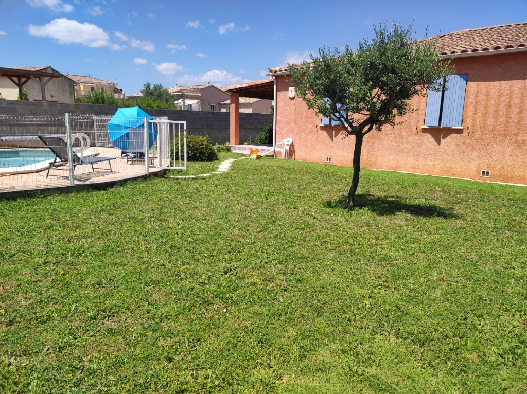 Maison de 105m2 sur un terrain de 950m2 dans le sud de la France. Cuisine ouverte sur le salon, 03 chambres, une avec un grand lit, les deux autres ont un lit en 90. Salle de bain avec douche et baignoire, toilette séparé. Piscine, clim réversible, moustiquaire.