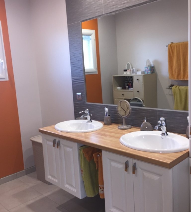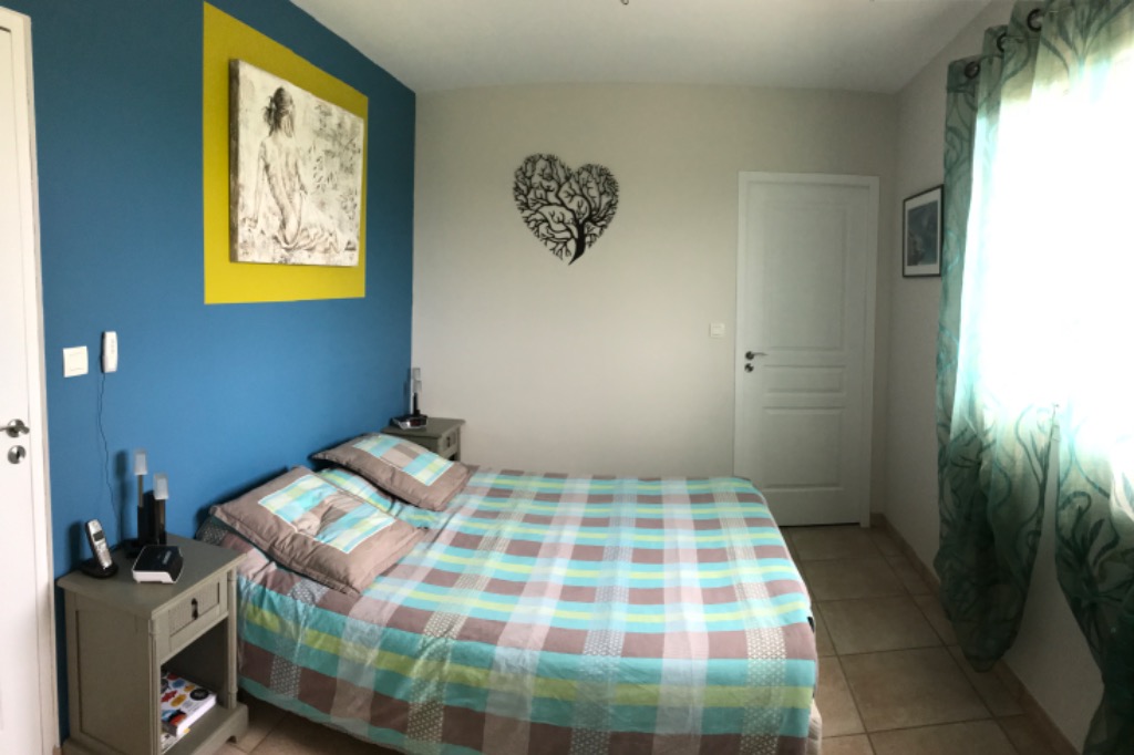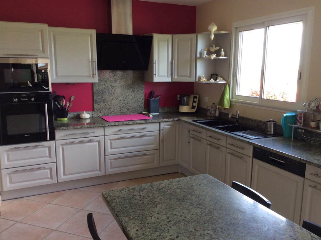 Maison de 150 M2 avec cuisine américaine, grand séjour, véranda, 3 chambres, 1 bureau, 2 salles d'eau, garage en sous-sol, jardin de 2000 M2. Piscine accessible dans la maison voisine (parents).