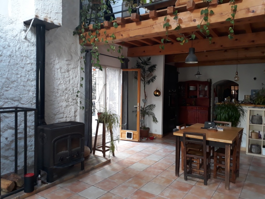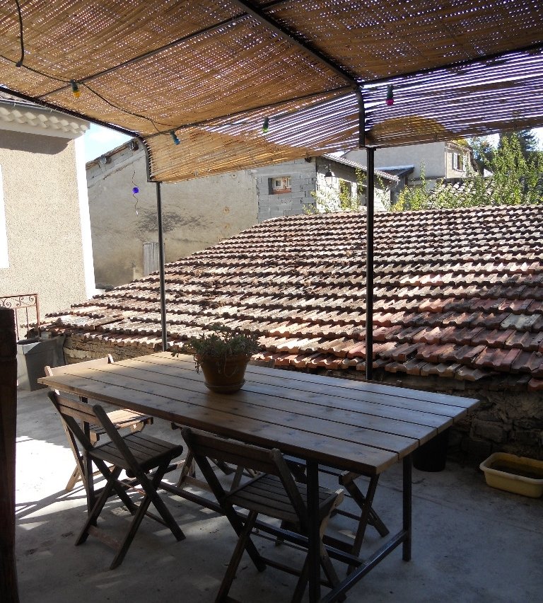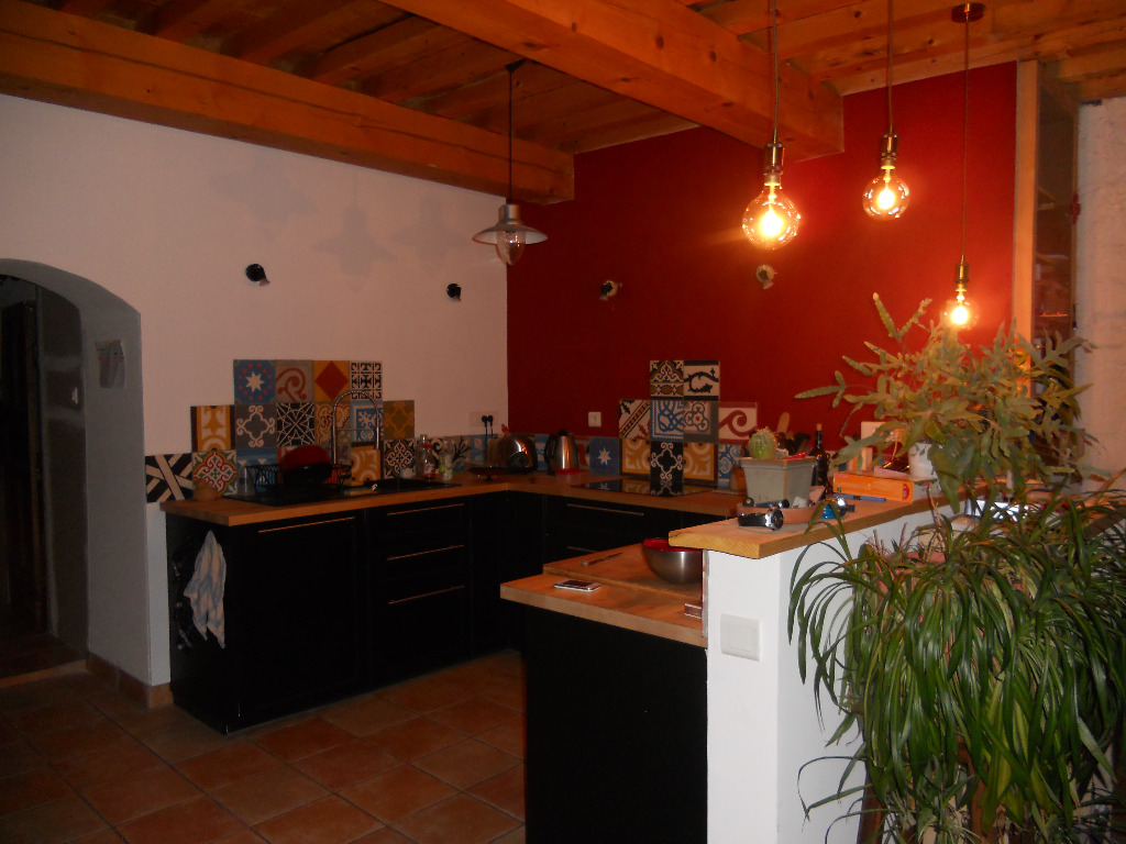 Notre maison est une maison de village. Elle a une surface de 120 m2, avec une cuisine ouverte sur une grande salle à manger, une mezzanine qui nous sert de salon, trois chambres (deux chambres avec un lit deux places et une chambre avec un lit une place). Nous avons deux terrasses, une devant la cuisine, celle où nous mangeons, et une qui donne devant les chambres des enfants avec une vue magnifique sur nos montagnes!