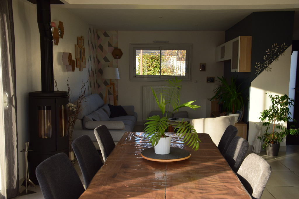 La maison est récente. Située sur un terrain de 600m², elle offre 120m² d'espace intérieur : une suite parentale avec une grande douche, 3 chambres d'enfants spacieuses, une cuisine ouverte, une seconde salle de bain, une buanderie et un garage. Une grande mezzanine offre un espace de jeux supplémentaire.