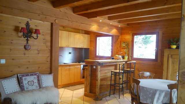 Chalet avec jardin, garage et cave en sous-sol. Salon, cuisine,1 suite parentale,2 chambres,1 salle de bain avec WC, bureau, mezzanine.