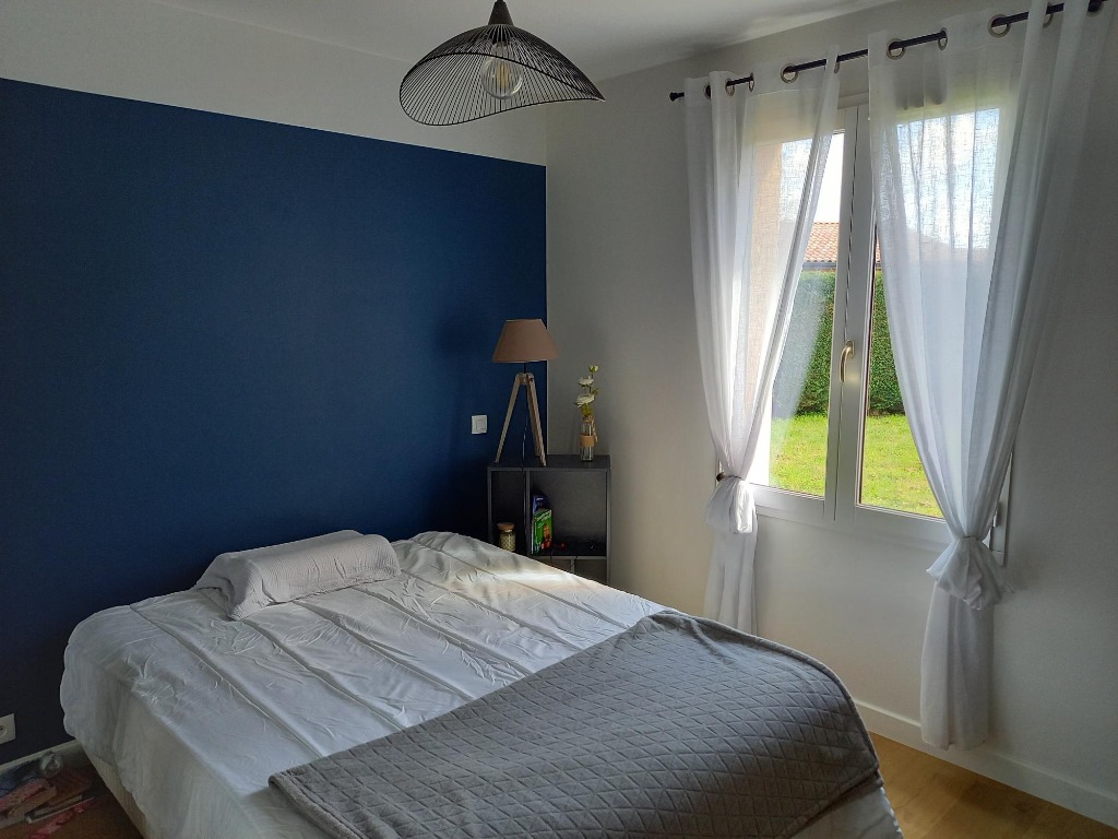 La maison est de plain pied, très lumineuse, et tout équipée (four, lave vaisselle, micro ondes, cafetière, bouilloire, frigo, ...). Située dans un quartier très calme, elle possède un grand jardin fermé (env 1400m² avec balançoire), une terrasse couverte d'une pergola (parfait pour les enfants ou pour des repas/apéros en extérieur) et 3 chambres. Voici le détail des chambres: 1 chambre parentale (avec sdb et lit 140), 1 chambre enfant (avec 1 lit 90), 1 autre chambre enfant (avec 1 lit gigogne, càd 2 matelas en 90 pouvant accueillir 2 enfants).
