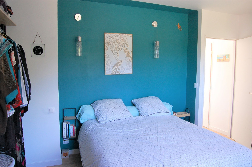 A l'étage, chambre parentale (lit Queen-size 160x200, matelas qualité hôtellerie neuf) avec sa salle d'eau attenante.