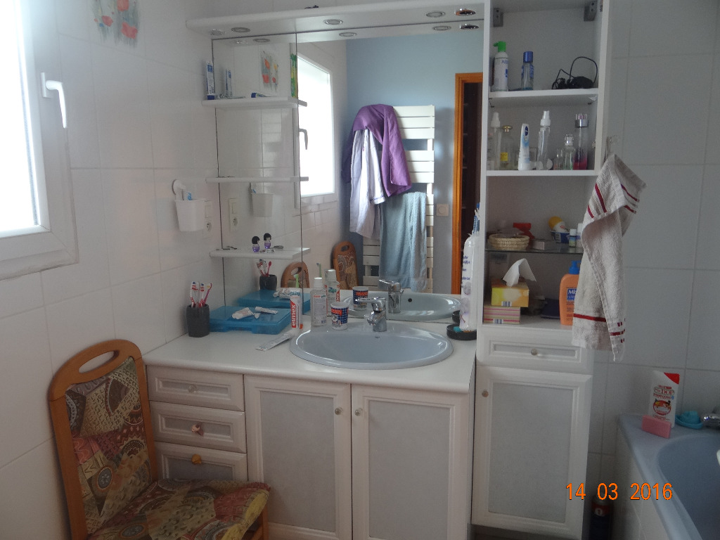 Maison de plain pied avec une mezzanine; une cuisine donnant sur le salon, salle à manger. 4 chambres, une salle de bain, une mezzanine (bureau et coin lecture), un jardin avec des jeux pour enfants (table de ping pong, trampoline, balançoire...).