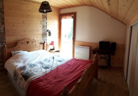 à l'étage 1 chambre avec lit de 160 (vue mont blanc) , 1 chambre avec lit enfant de 90 (vue mont blanc) et une chambre 160 et possibilité de lit parapluie