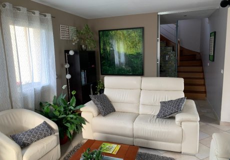 Sur 155 m2 habitables, la maison comprend une salle-salon de 50 m2, cuisine, bureau et salle d'eau avec douche au RDC. A l'étage, une chambre avec très grand lit électrique 2*90*200, 2 autres chambres (lits de 160*200 dans chaque), une chambre d'amis avec TV et canapé lit (clic clac 120*190), un bureau, 1 SDB avec baignoire et douche. La maison est sur un sous-sol complet.